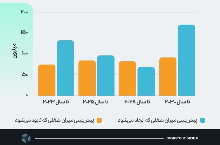 این را میتوان از مقایسه گزارشهای چند سال اخیر مجمع جهانی اقتصاد برداشت کرد. از سال 2018 تا سال 2023 که اثرات فراگیری هوش مصنوعی چندان مشخص نبود، پیشبینیها درباره فرصتهای شغلی آینده بدبینانه بود اما در نظرسنجی جدید، شاهد جهشی قابلتوجه درباره ایجاد موقعیتهای شغلی جدید هستیم.